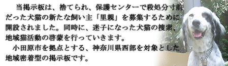 基本的に情報を交換するツールとしてのサイト&掲示板でありたいと思います。殺処分という現実は過酷ですが、